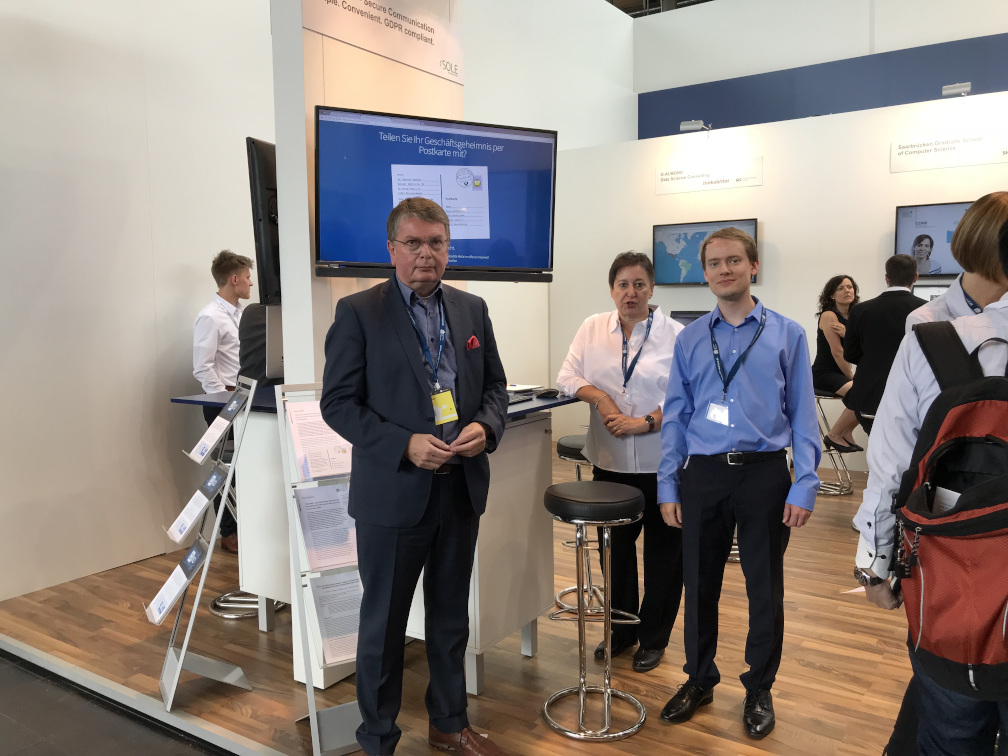 Unser Stand auf der CEBIT 2018 (v.l.n.r.: Prof. Dr. Stephan Ory, Bärbel Ruffing und Dominik Leibenger).Unsere CEBIT-Bilanz? Es war uns eine Ehre, auf der bekanntesten IT-Messe vertreten zu sein – und doch freuen wir uns darauf, die nächsten Tage wieder voll und ganz an der Weiterentwicklung unserer Produktpalette arbeiten zu können. Es stehen einige Umstellungen an, um MavoRA/MavoBIZ/MavoTAX noch flexibler zu machen. Aber keine Sorge: Unser Anspruch ist und bleibt es, Ende-zu-Ende-Verschlüsselung nach dem neuesten Stand der Technik auch für den IT-Laien nutzbar zu machen. Daran wird sich auch mit zukünftigen Updates nichts ändern.